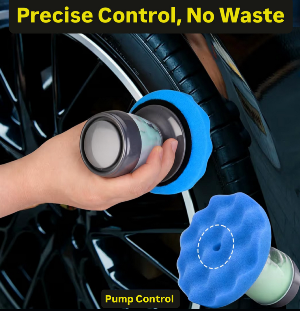 Level up your tire game with the Tread Glo Pump Applicator — the professional-grade tool designed for clean, controlled shine. Featuring a built-in pump system, this applicator delivers tire dressing directly to the sponge, eliminating mess and waste.